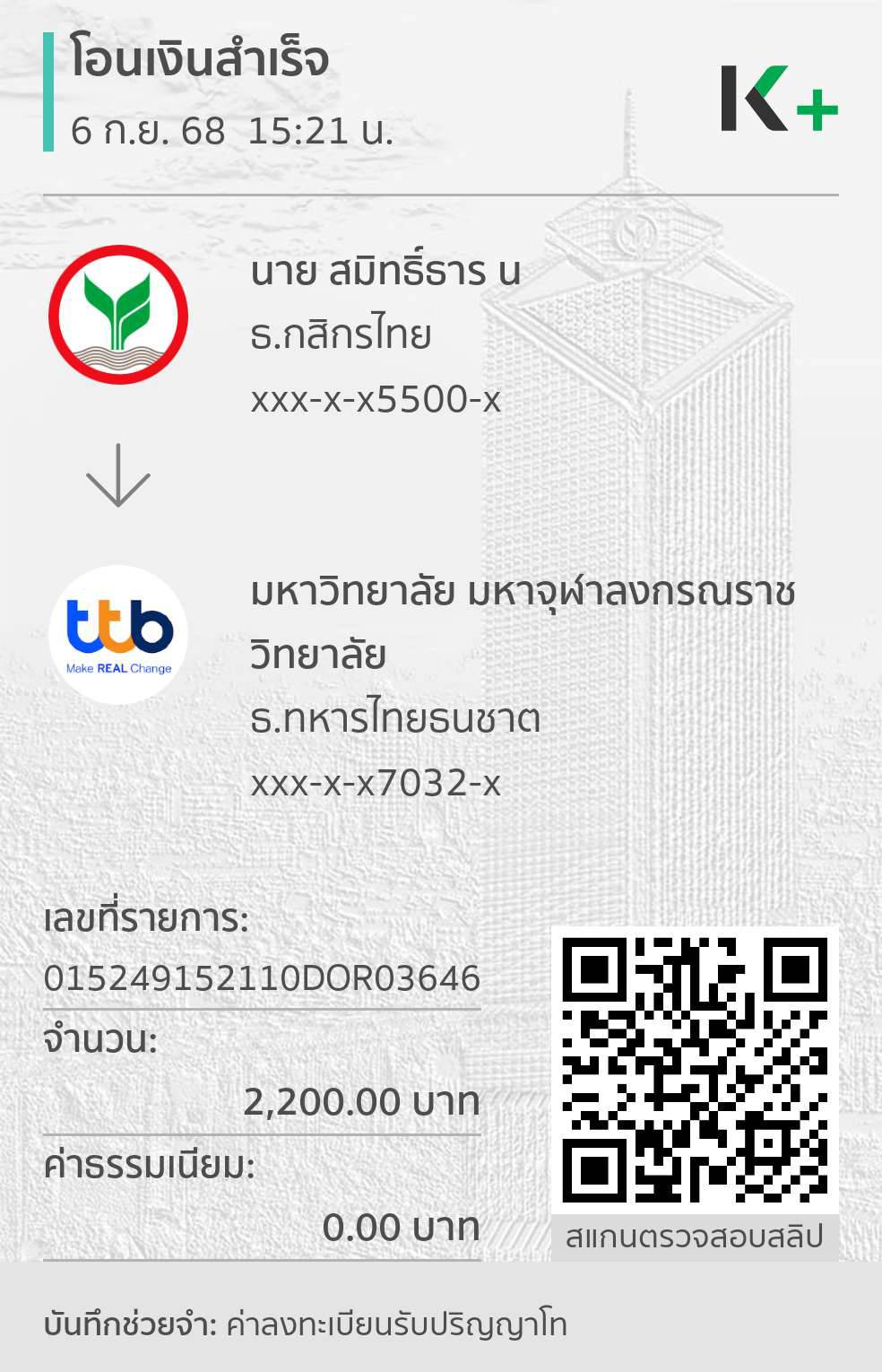 ใบเสร็จรับเงิน/เอกสารยืนยันการชำระเงิน(แนบเอกสาร)