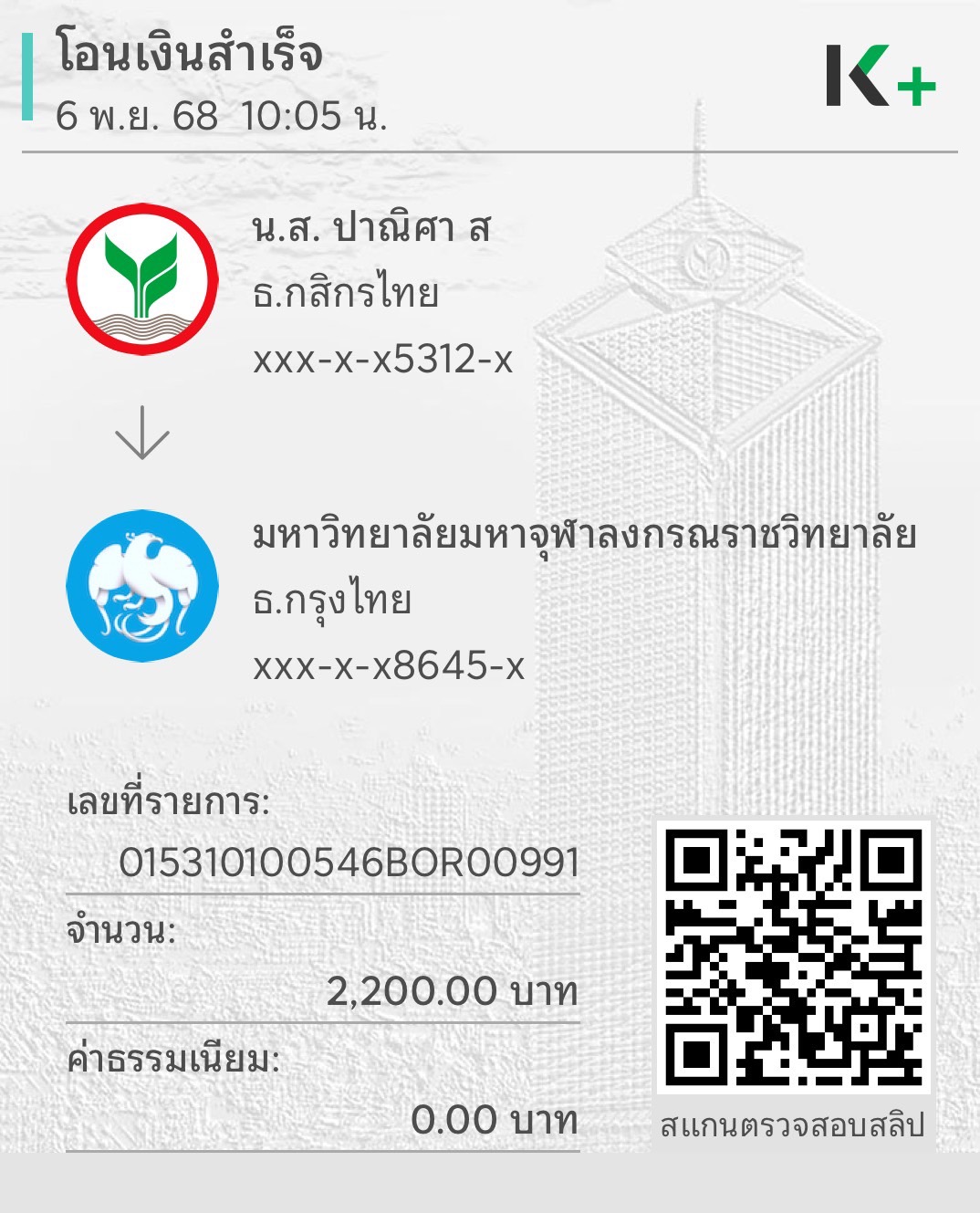 ใบเสร็จรับเงิน/เอกสารยืนยันการชำระเงิน(แนบเอกสาร)