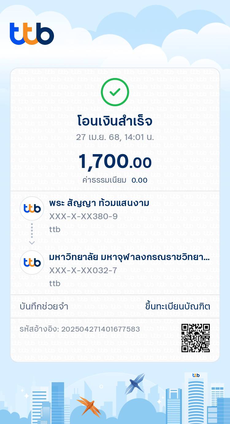 * เข้าพิธีประสาทปริญญาวันที่ 6 ธันวาคม 2568