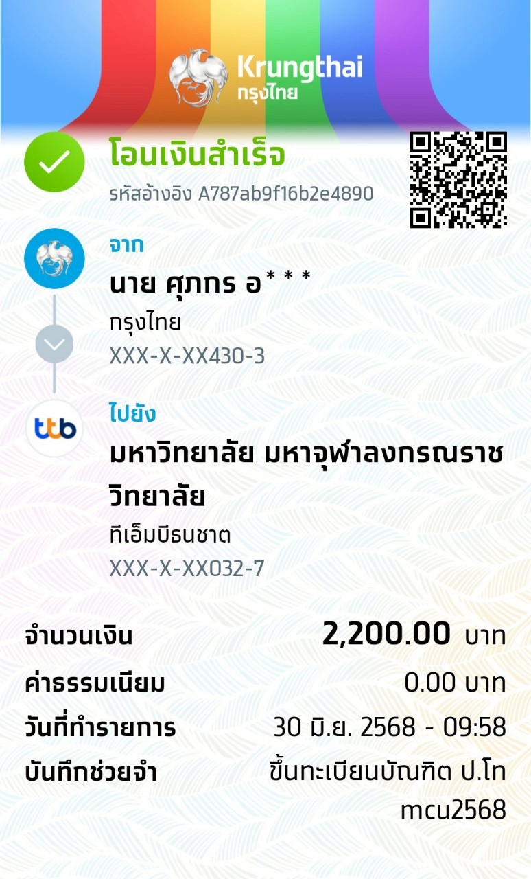 * เข้าพิธีประสาทปริญญาวันที่ 7 ธันวาคม 2568