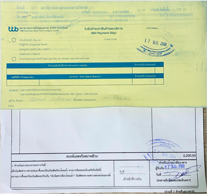 ใบเสร็จรับเงิน/เอกสารยืนยันการชำระเงิน(แนบเอกสาร)