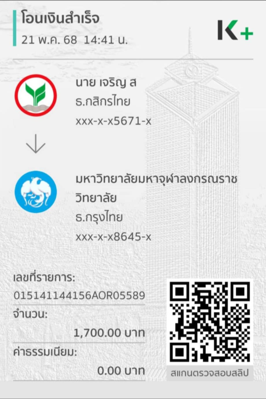 ใบเสร็จรับเงิน/เอกสารยืนยันการชำระเงิน(แนบเอกสาร)