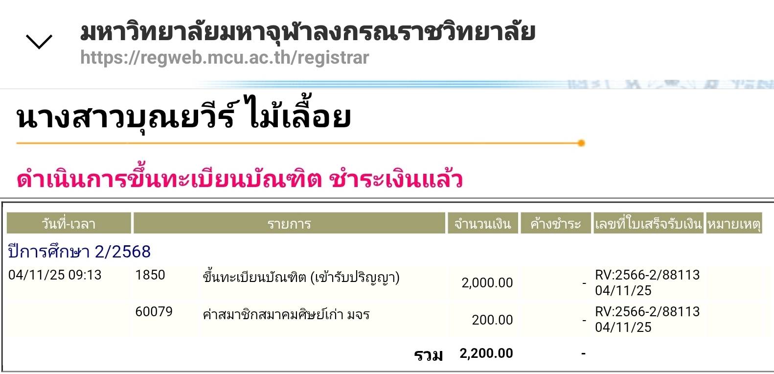 | รหัสนิสิต : 6627204021 | ชื่อ : นางสาวบุณยวีร์ | ฉายา: - | นามสกุล: ไม้เลื้อย |
