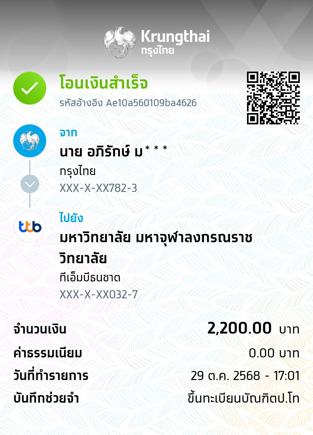QR Code สำหรับสแกนเข้าร่วมพิธี * เข้าพิธีประสาทปริญญาวันที่ 7 ธันวาคม 2568 |