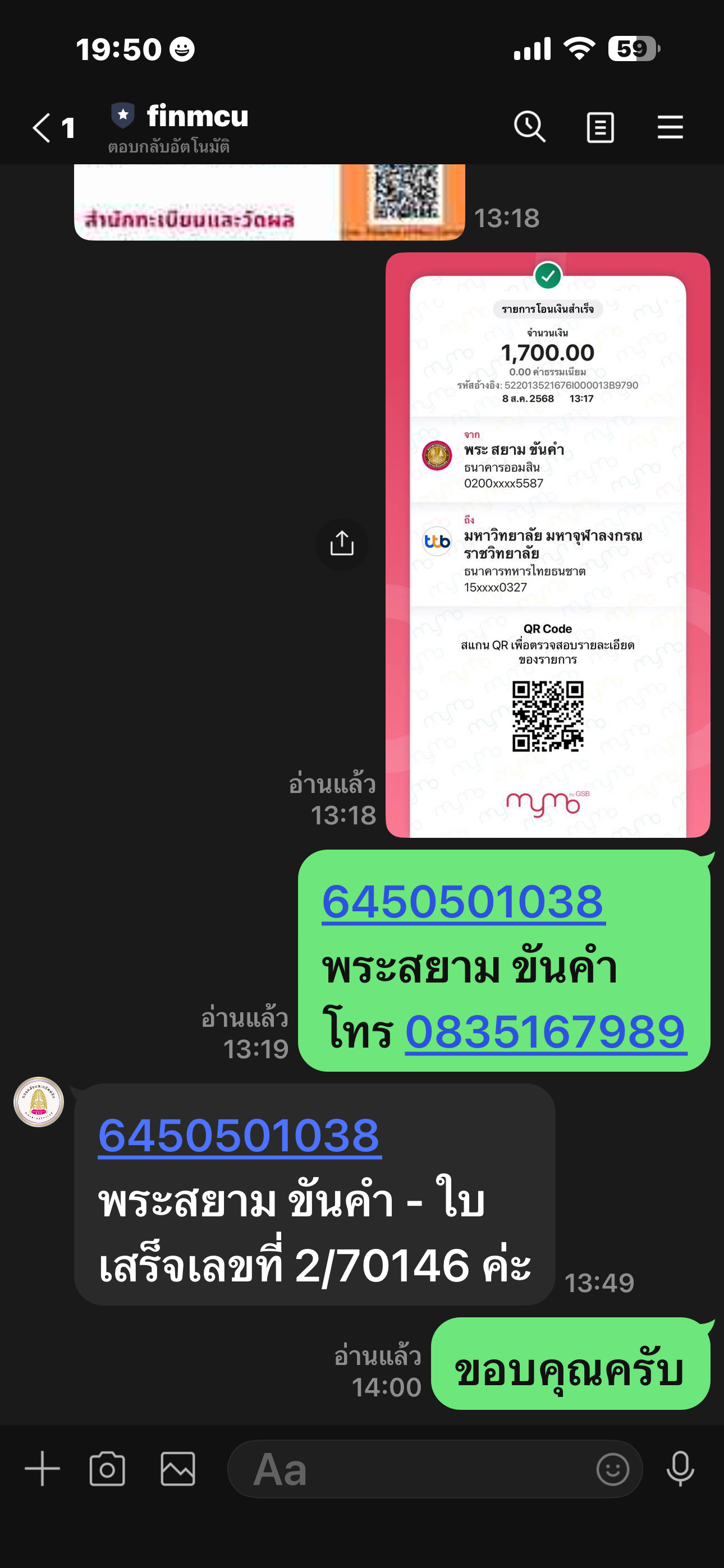 | รหัสนิสิต : 6450501038 | ชื่อ : พระสยาม | ฉายา: ปญฺญาวํโส | นามสกุล: ขันคำ |