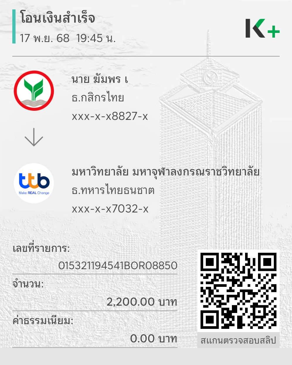 ใบเสร็จรับเงิน/เอกสารยืนยันการชำระเงิน(แนบเอกสาร)