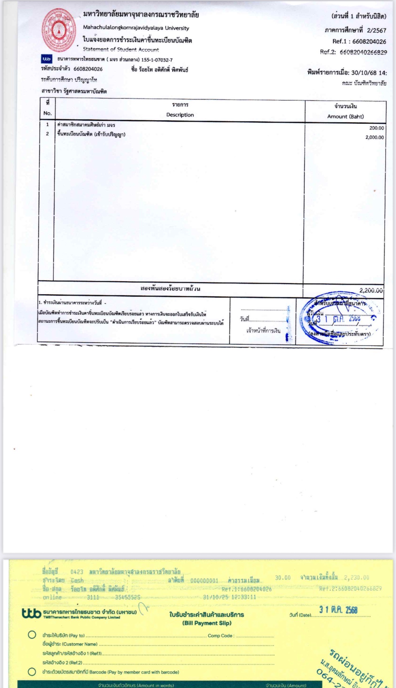 ใบเสร็จรับเงิน/เอกสารยืนยันการชำระเงิน(แนบเอกสาร)
