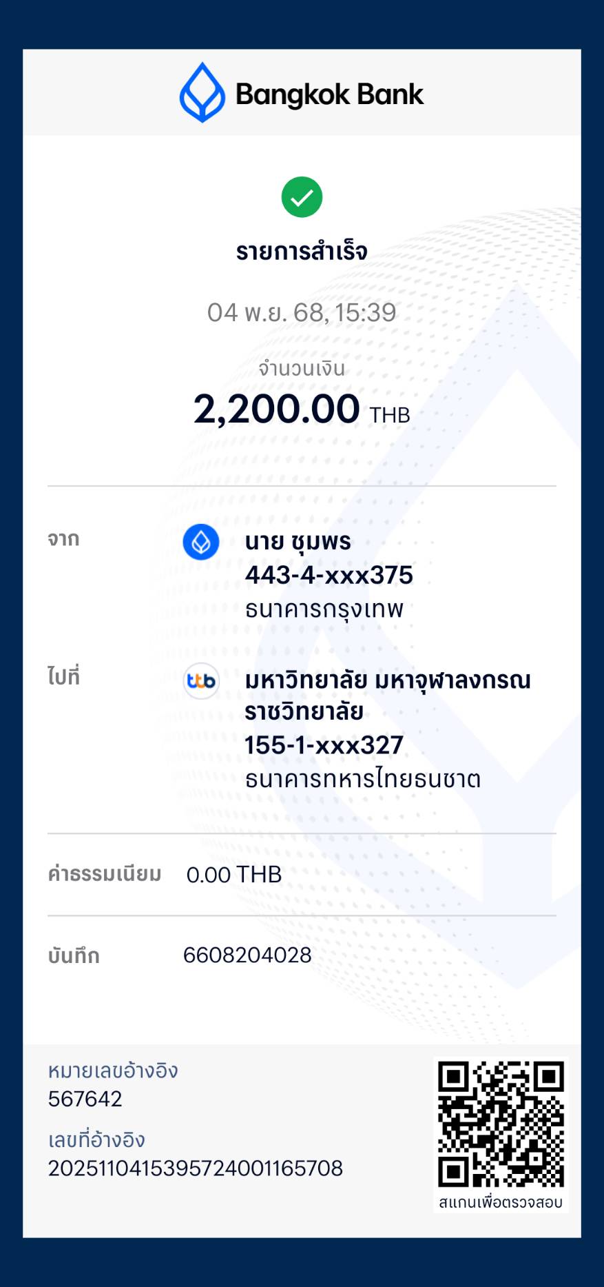 ใบเสร็จรับเงิน/เอกสารยืนยันการชำระเงิน(แนบเอกสาร)