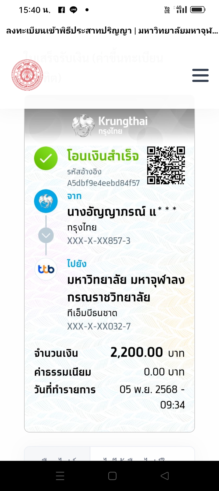 * เข้าพิธีประสาทปริญญาวันที่ 7 ธันวาคม 2568