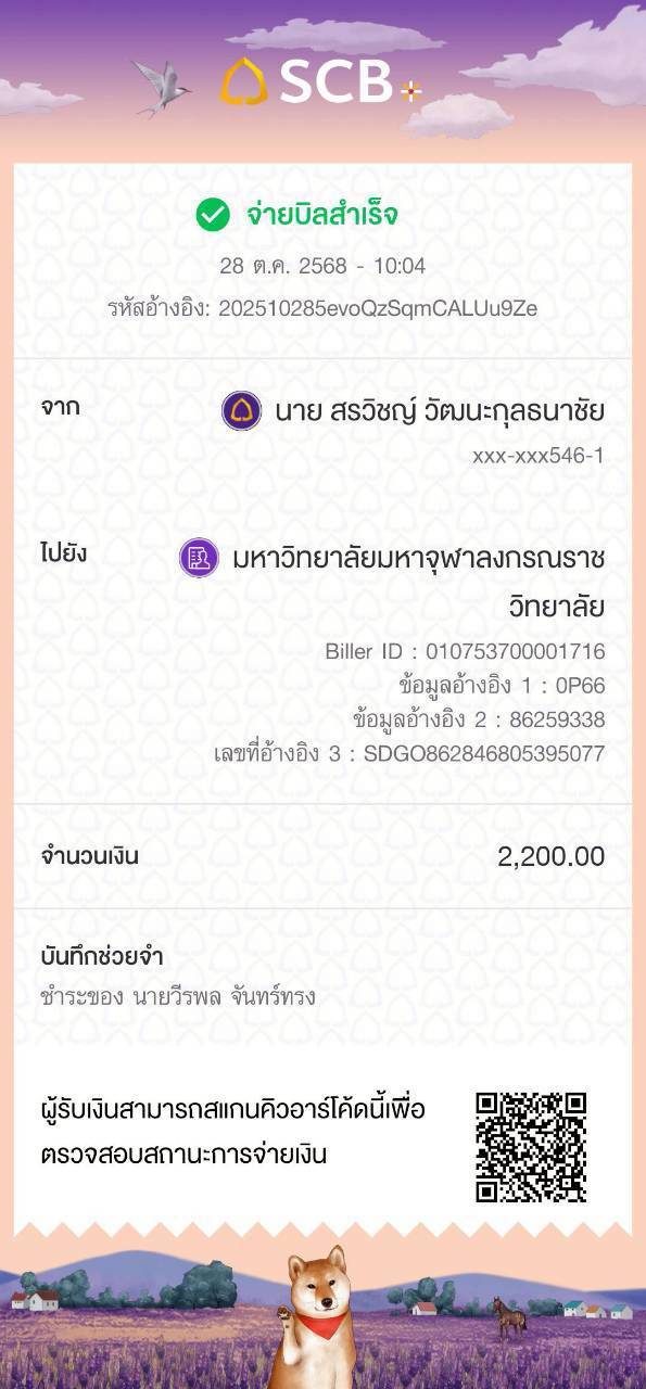 ใบเสร็จรับเงิน/เอกสารยืนยันการชำระเงิน(แนบเอกสาร)