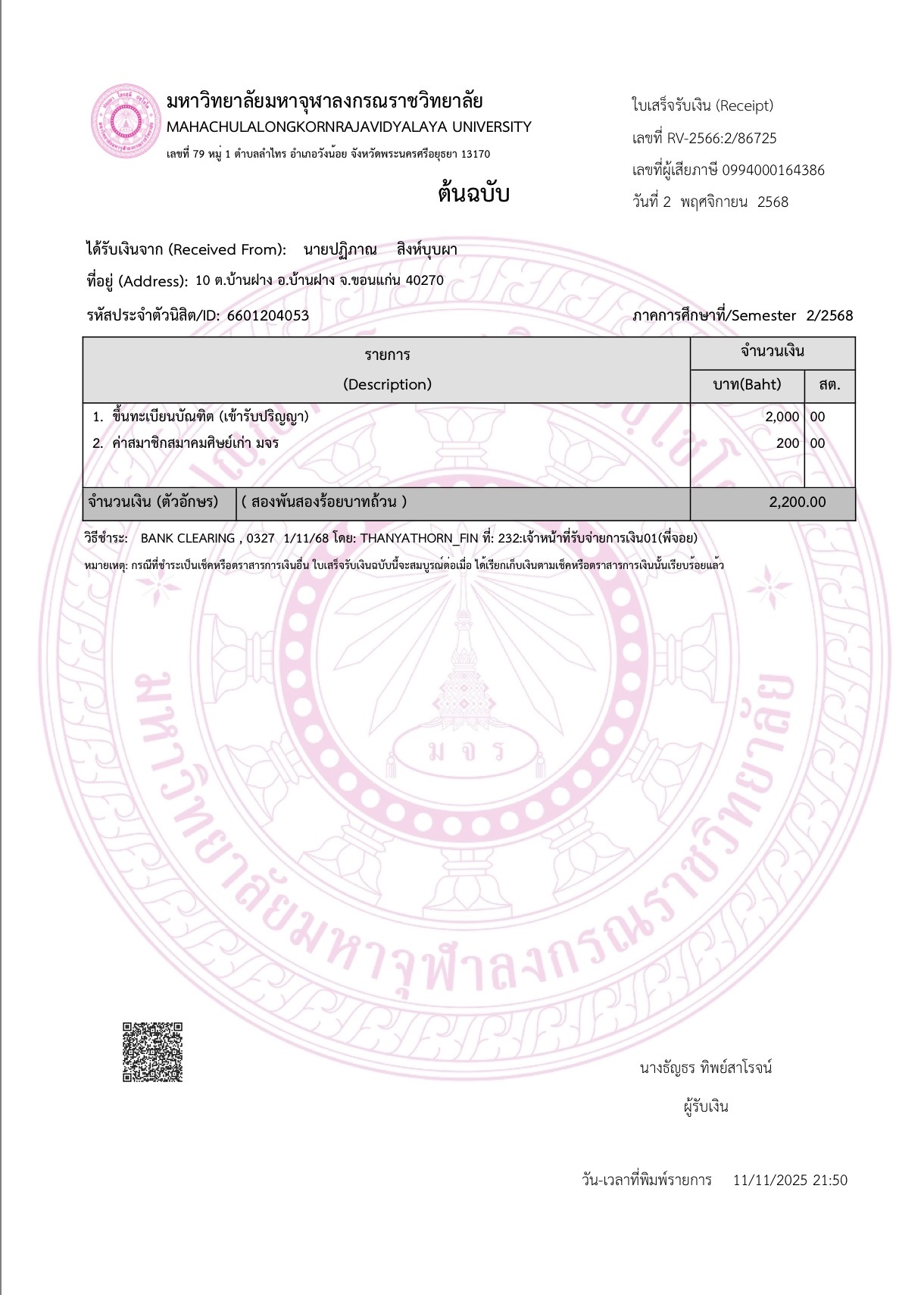* เข้าพิธีประสาทปริญญาวันที่ 7 ธันวาคม 2568