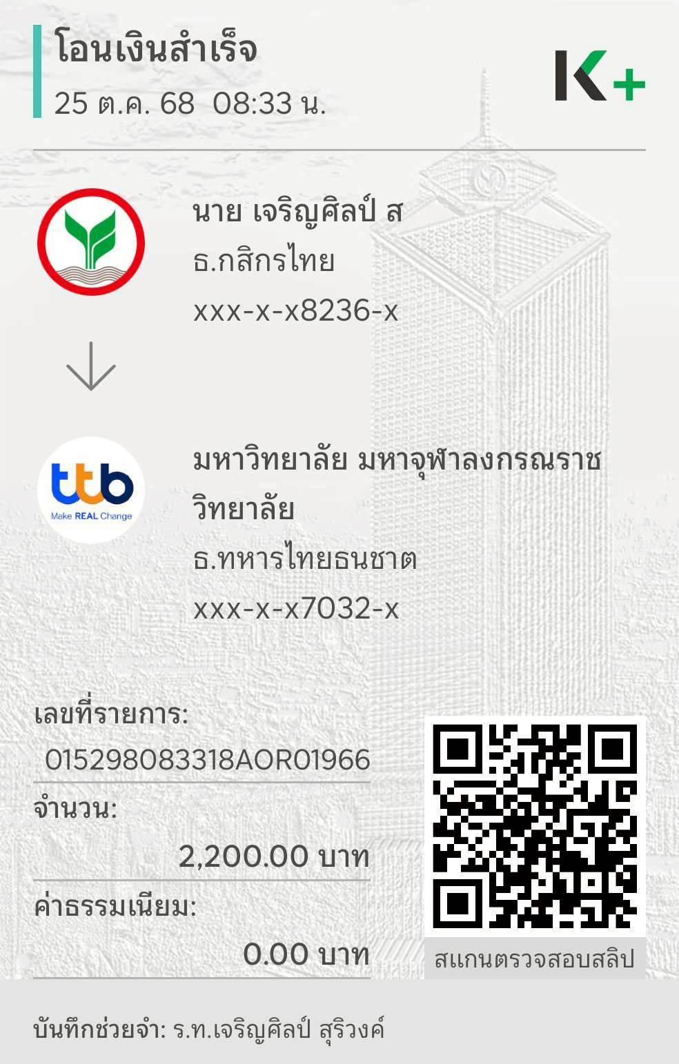 ใบเสร็จรับเงิน/เอกสารยืนยันการชำระเงิน(แนบเอกสาร)