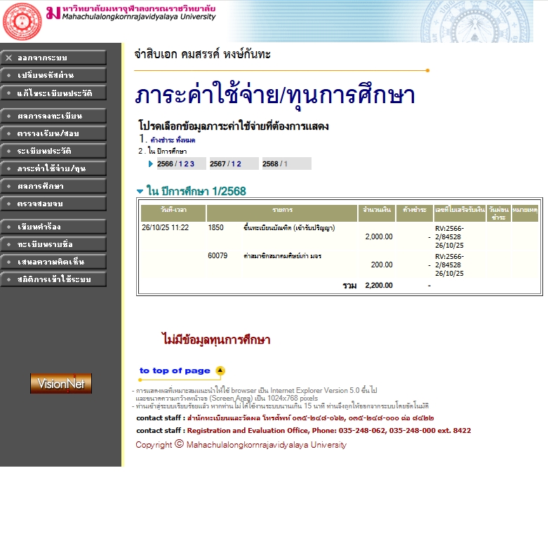| รหัสนิสิต : 6650204020 | ชื่อ : จ่าสิบเอก คมสรรค์ | ฉายา: - | นามสกุล: หงษ์กันทะ |