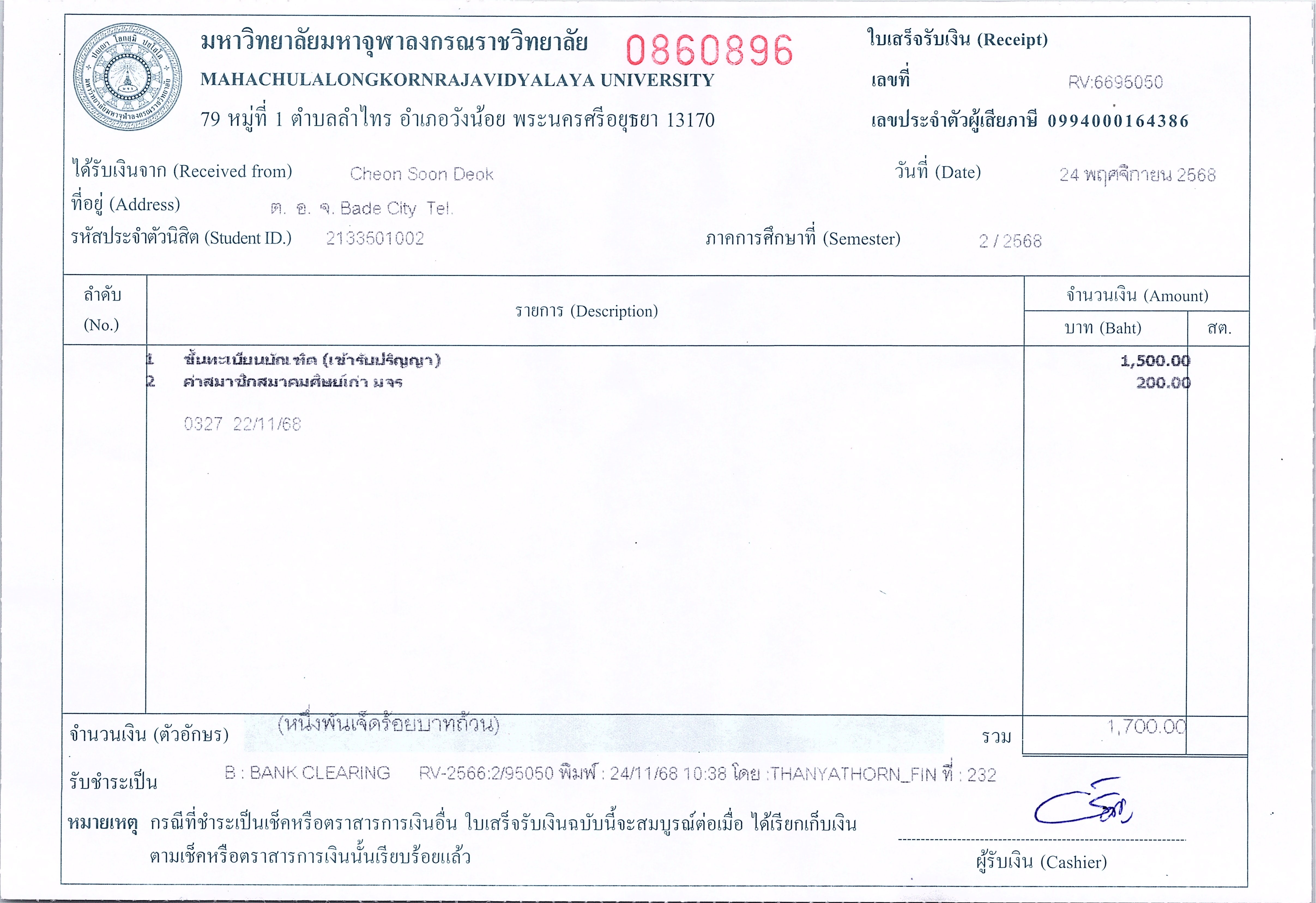 รหัสนิสิต : 2133501002 ชื่อ : Cheon Soon Deok ฉายา: - นามสกุล: -
