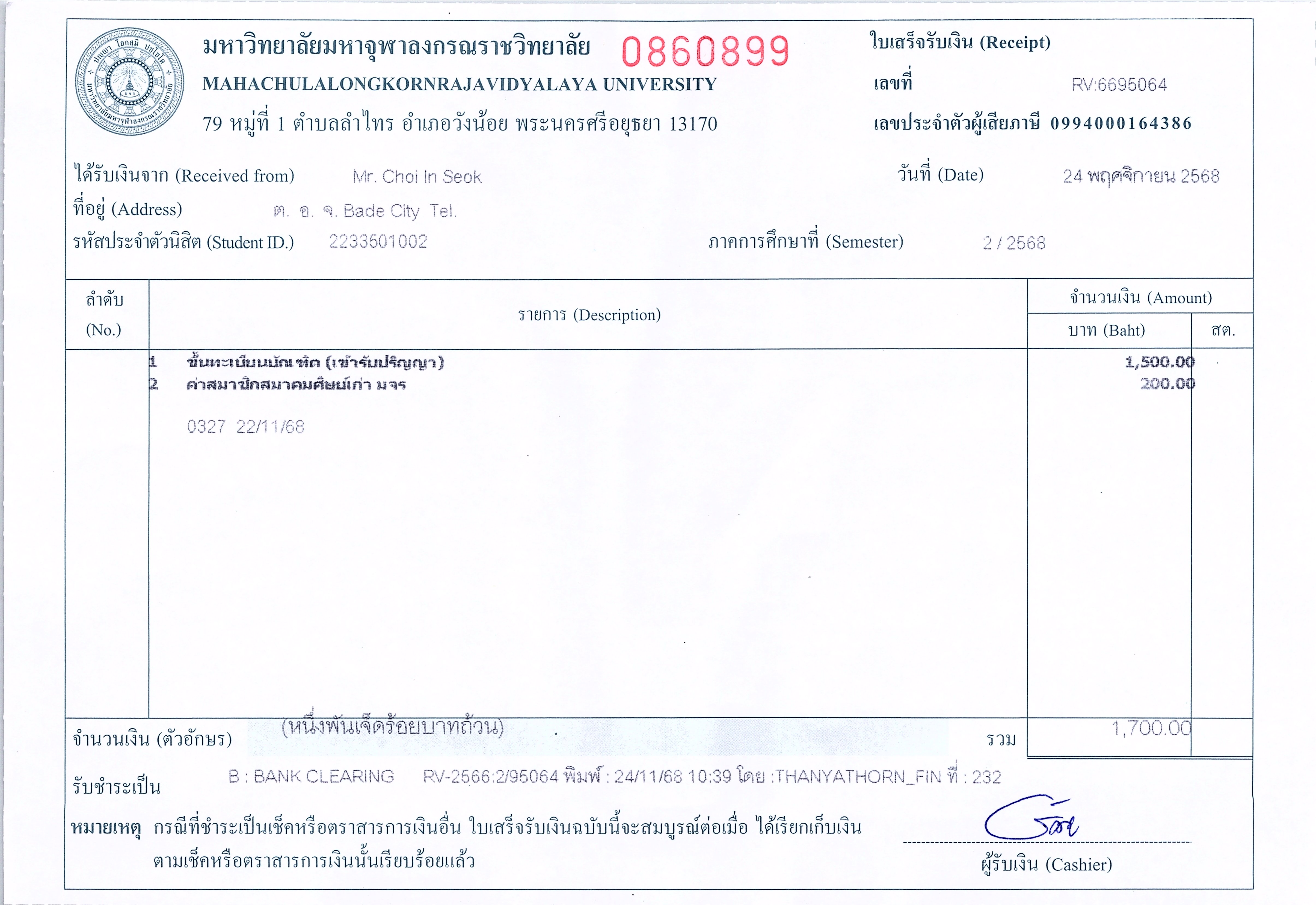 | รหัสนิสิต : 2233501002 | ชื่อ : Choi In Seok | ฉายา: - | นามสกุล: - |