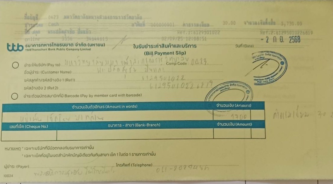 ใบเสร็จรับเงิน/เอกสารยืนยันการชำระเงิน(แนบเอกสาร)