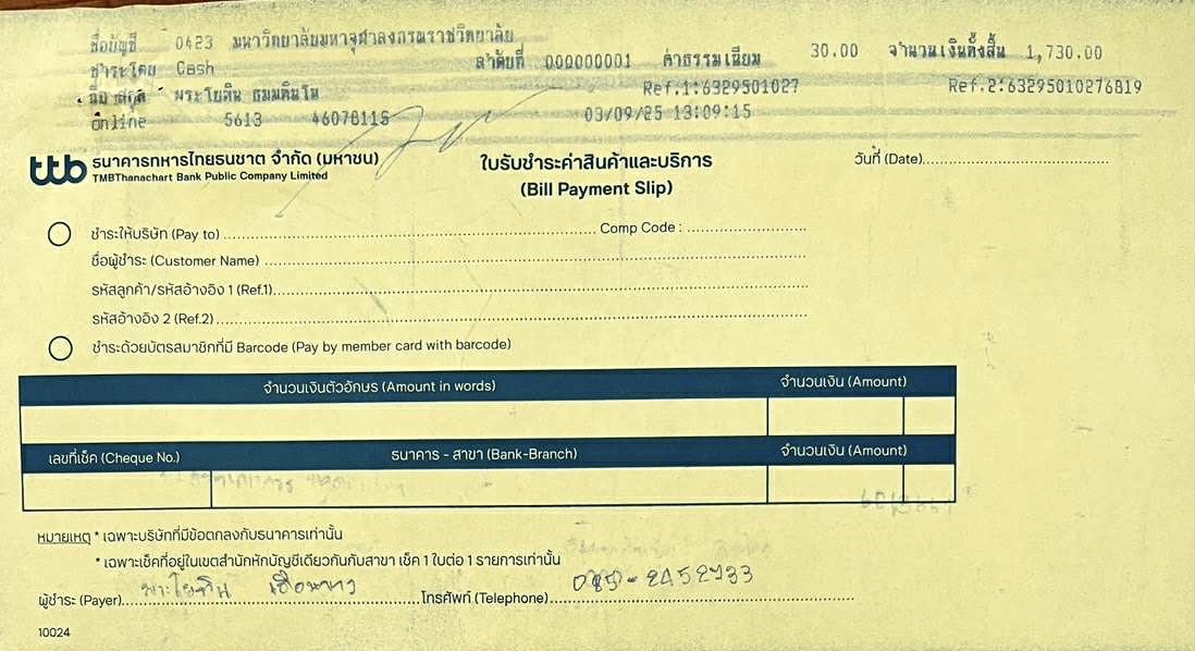 | รหัสนิสิต : 6329501027 | ชื่อ : พระโยทิน | ฉายา: ธมฺมทินฺโน | นามสกุล: เดือนขาว |