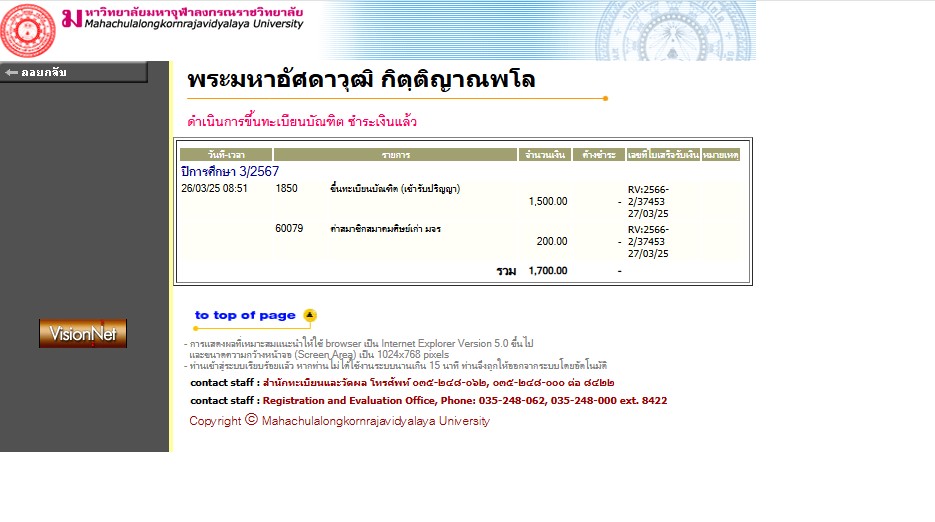 สถานะเข้าพิธีประสาทปริญญา : บรรพชิต ระดับ : ปริญญาตรี สังกัดคณะ: คณะครุศาสตร์ สาขาวิชา: สังคมศึกษา