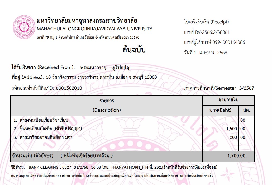 | รหัสนิสิต : 6301502010 | ชื่อ : พระมหาวรายุ | ฉายา: ภูริปญฺโญ | นามสกุล: หนูเย็น |