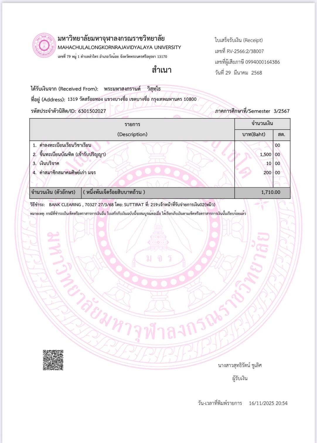 | รหัสนิสิต : 6301502027 | ชื่อ : พระมหาสงกรานต์ | ฉายา: วิสุทฺโธ | นามสกุล: วรรัมย์ |