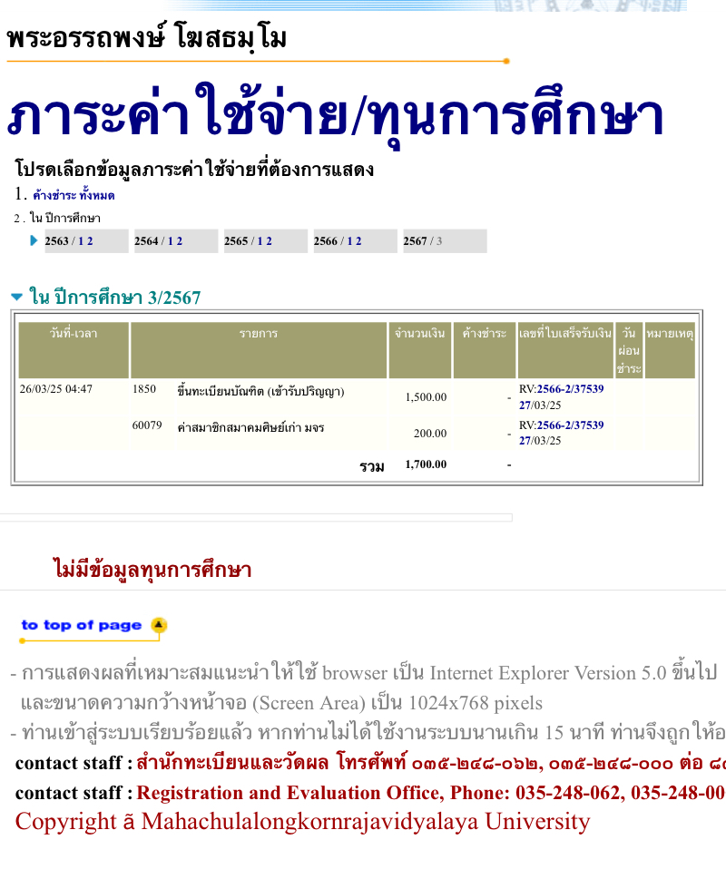 | สถานะเข้าพิธีประสาทปริญญา : บรรพชิต | ระดับ : ปริญญาตรี | สังกัดคณะ: คณะครุศาสตร์ | สาขาวิชา: สังคมศึกษา |