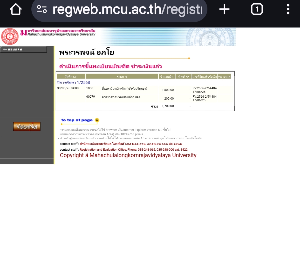 | สถานะเข้าพิธีประสาทปริญญา : บรรพชิต | ระดับ : ปริญญาตรี | สังกัดคณะ: คณะพุทธศาสตร์ | สาขาวิชา: พระพุทธศาสนา |