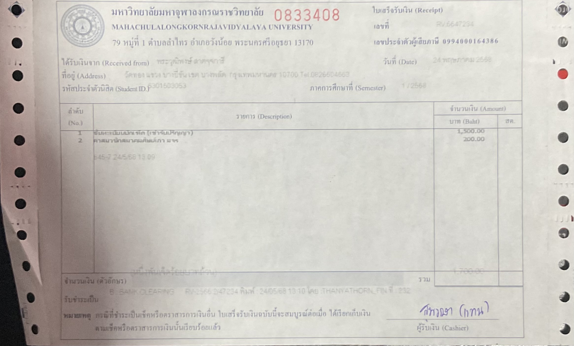 ใบเสร็จรับเงิน/เอกสารยืนยันการชำระเงิน(แนบเอกสาร)