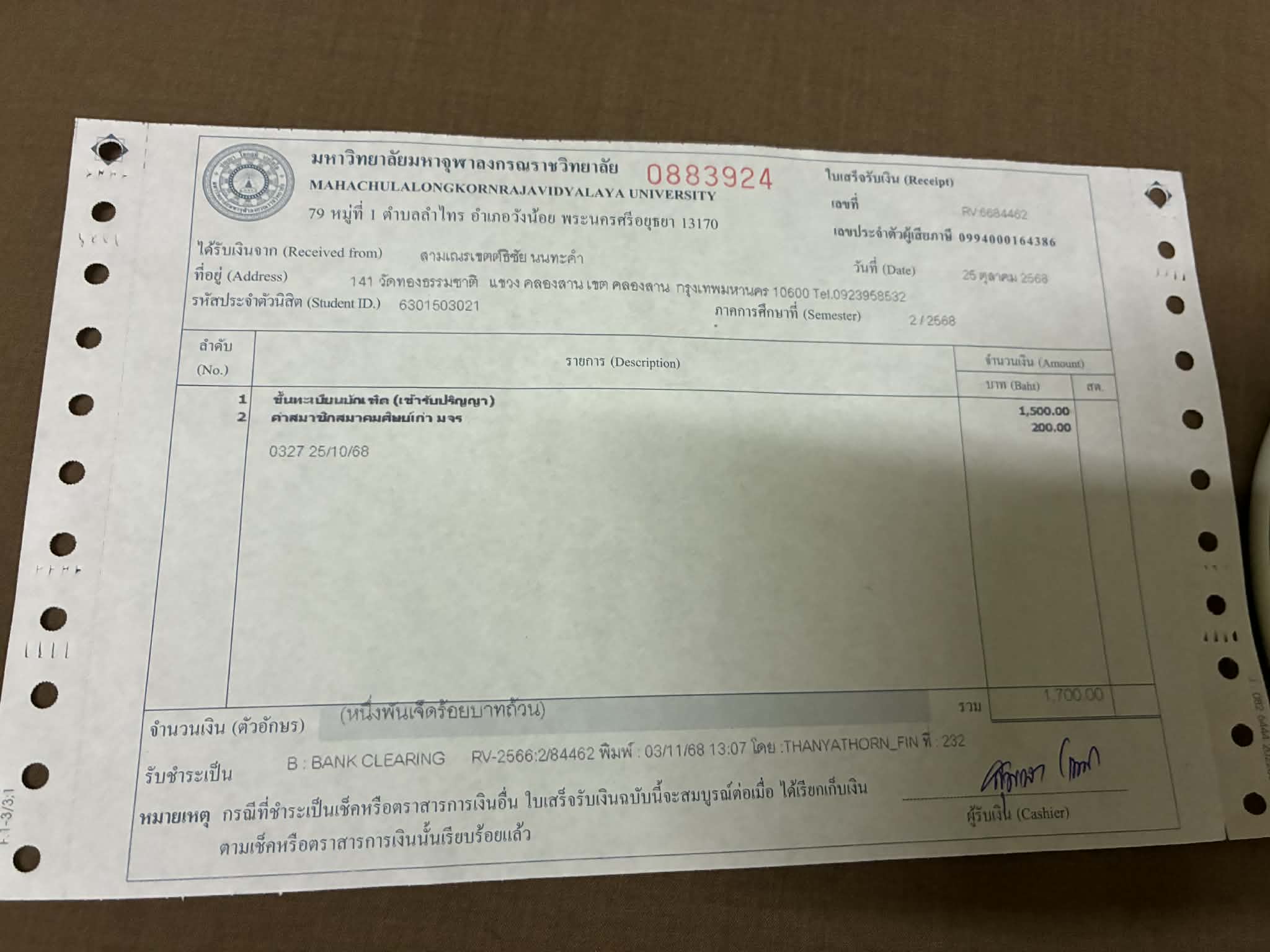 | สถานะเข้าพิธีประสาทปริญญา : บรรพชิต | ระดับ : ปริญญาตรี | สังกัดคณะ: คณะมนุษยศาสตร์ | สาขาวิชา: จิตวิทยา |