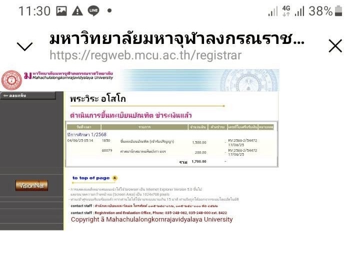 | สถานะเข้าพิธีประสาทปริญญา : บรรพชิต | ระดับ : ปริญญาตรี | สังกัดคณะ: คณะพุทธศาสตร์ | สาขาวิชา: พระพุทธศาสนา |