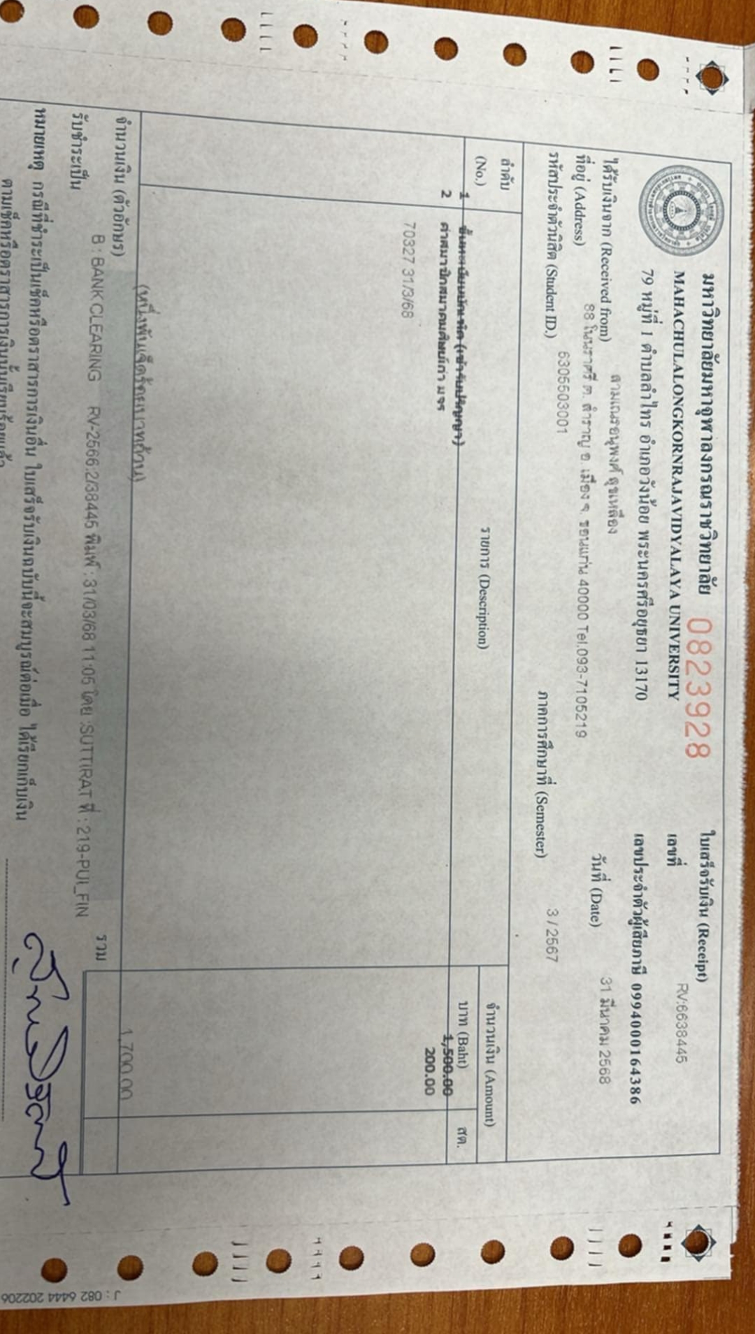 ใบเสร็จรับเงิน/เอกสารยืนยันการชำระเงิน(แนบเอกสาร)