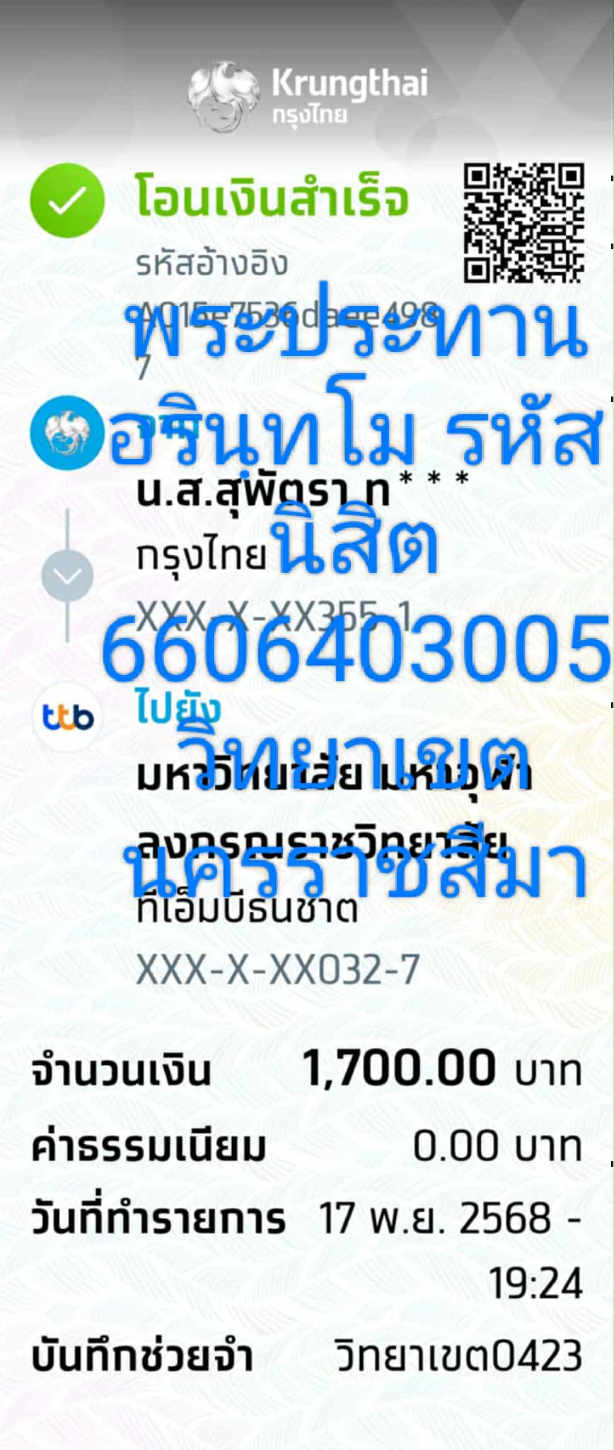 | รหัสนิสิต : 6606403005 | ชื่อ : พระประทาน | ฉายา: อรินฺทโม | นามสกุล: กกขุนทด |