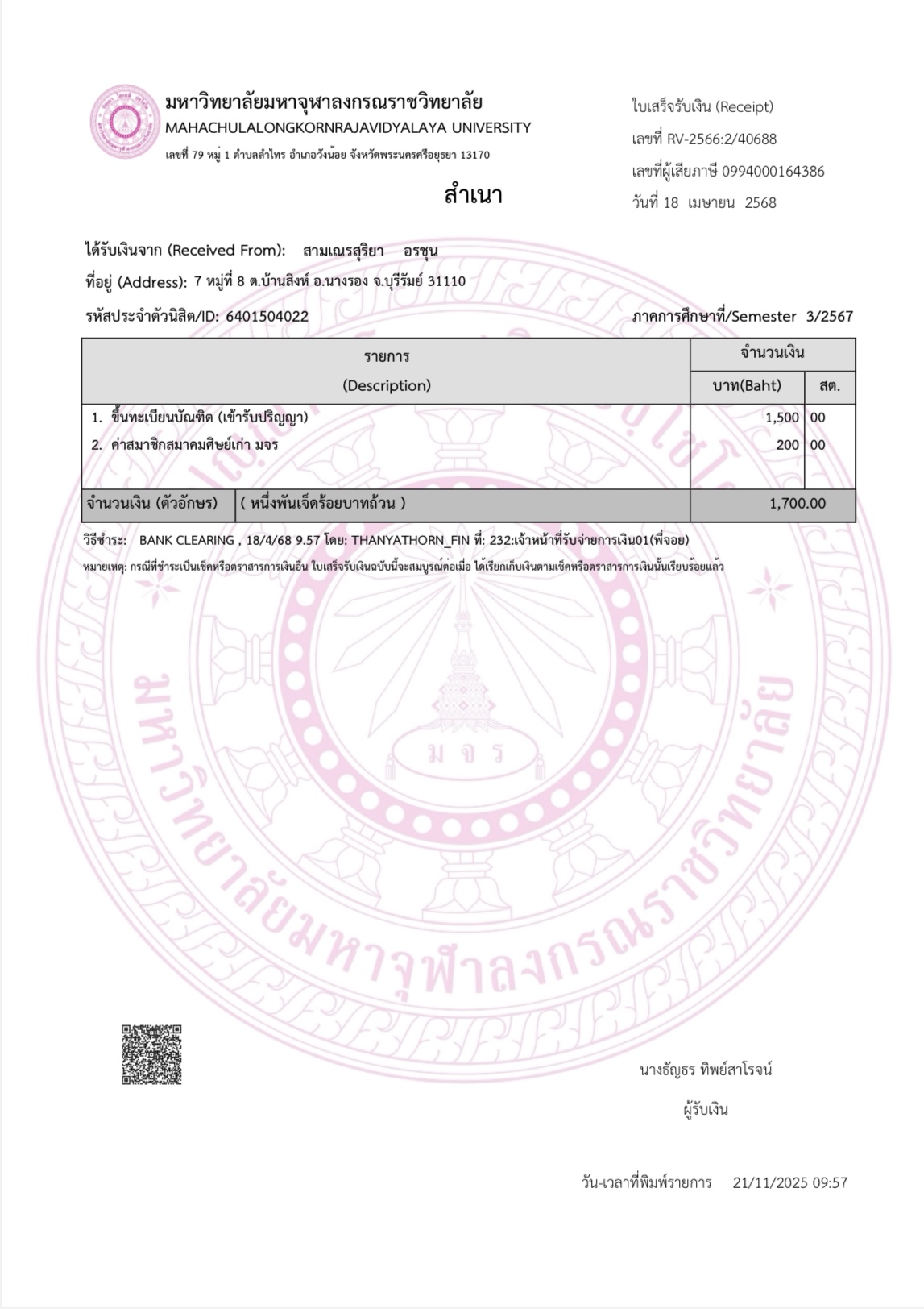QR Code สำหรับสแกนเข้าร่วมพิธี * เข้าพิธีประสาทปริญญาวันที่ 6 ธันวาคม 2568 |