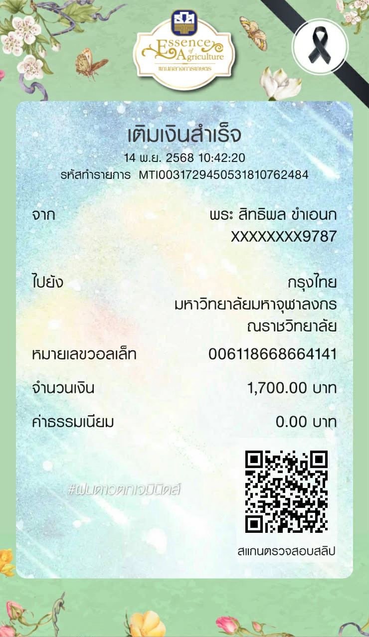 * เข้าพิธีประสาทปริญญาวันที่ 6 ธันวาคม 2568