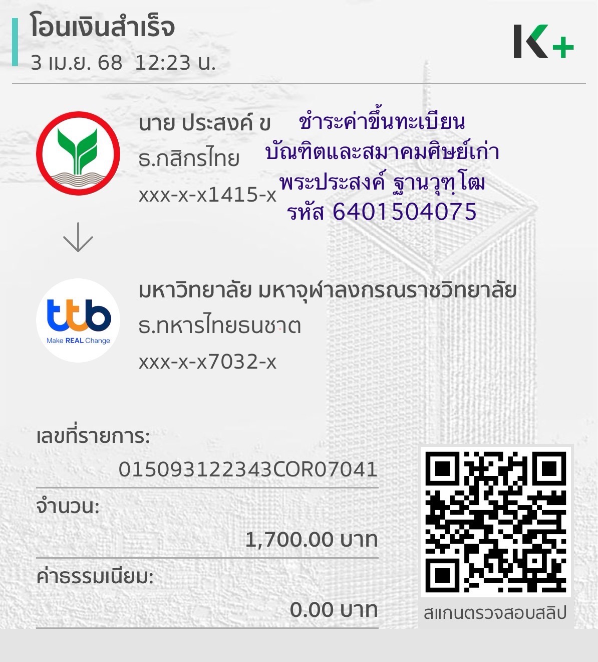 QR Code สำหรับสแกนเข้าร่วมพิธี * เข้าพิธีประสาทปริญญาวันที่ 6 ธันวาคม 2568 |