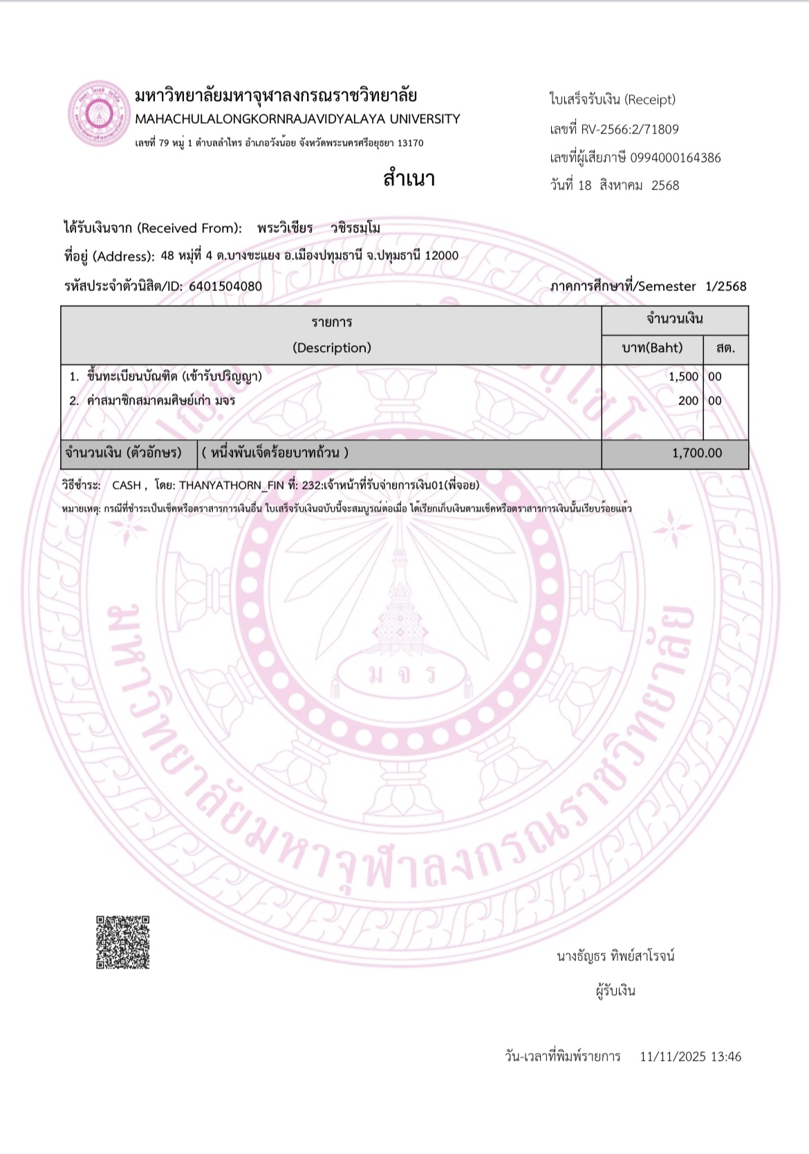 | รหัสนิสิต : 6401504080 | ชื่อ : พระวิเชียร | ฉายา: วชิรธมฺโม | นามสกุล: เรืองเกษา |
