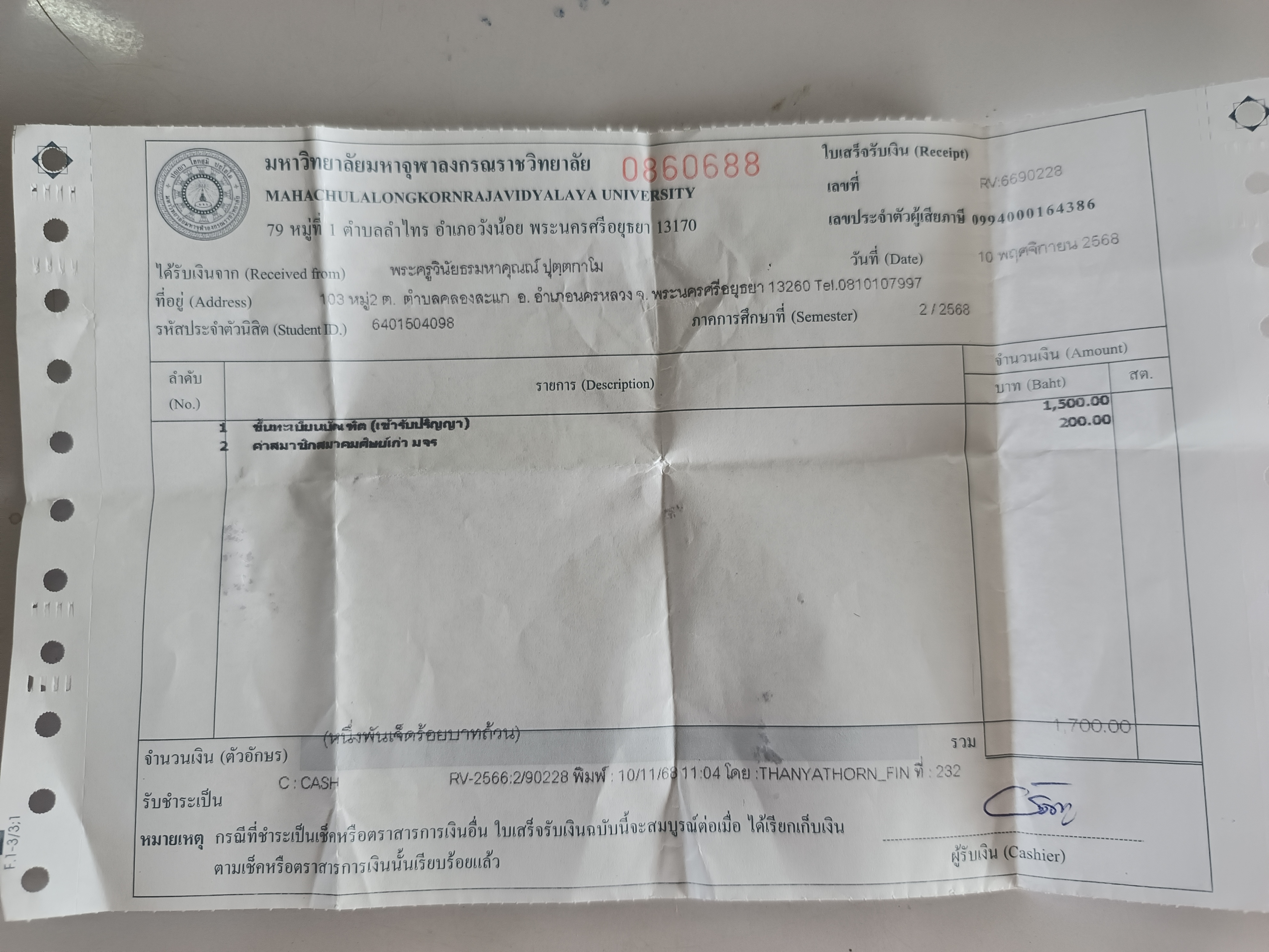 สถานะเข้าพิธีประสาทปริญญา : บรรพชิต ระดับ : ปริญญาตรี สังกัดคณะ: คณะสังคมศาสตร์ สาขาวิชา: การจัดการเชิงพุทธ