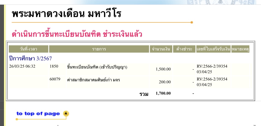 สถานะเข้าพิธีประสาทปริญญา : บรรพชิต ระดับ : ปริญญาตรี สังกัดคณะ: คณะสังคมศาสตร์ สาขาวิชา: การจัดการเชิงพุทธ