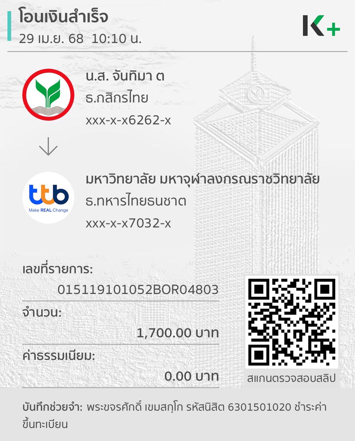 * เข้าพิธีประสาทปริญญาวันที่ 6 ธันวาคม 2568
