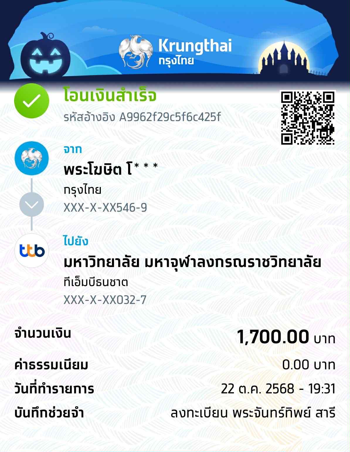 QR Code สำหรับสแกนเข้าร่วมพิธี * เข้าพิธีประสาทปริญญาวันที่ 6 ธันวาคม 2568 |