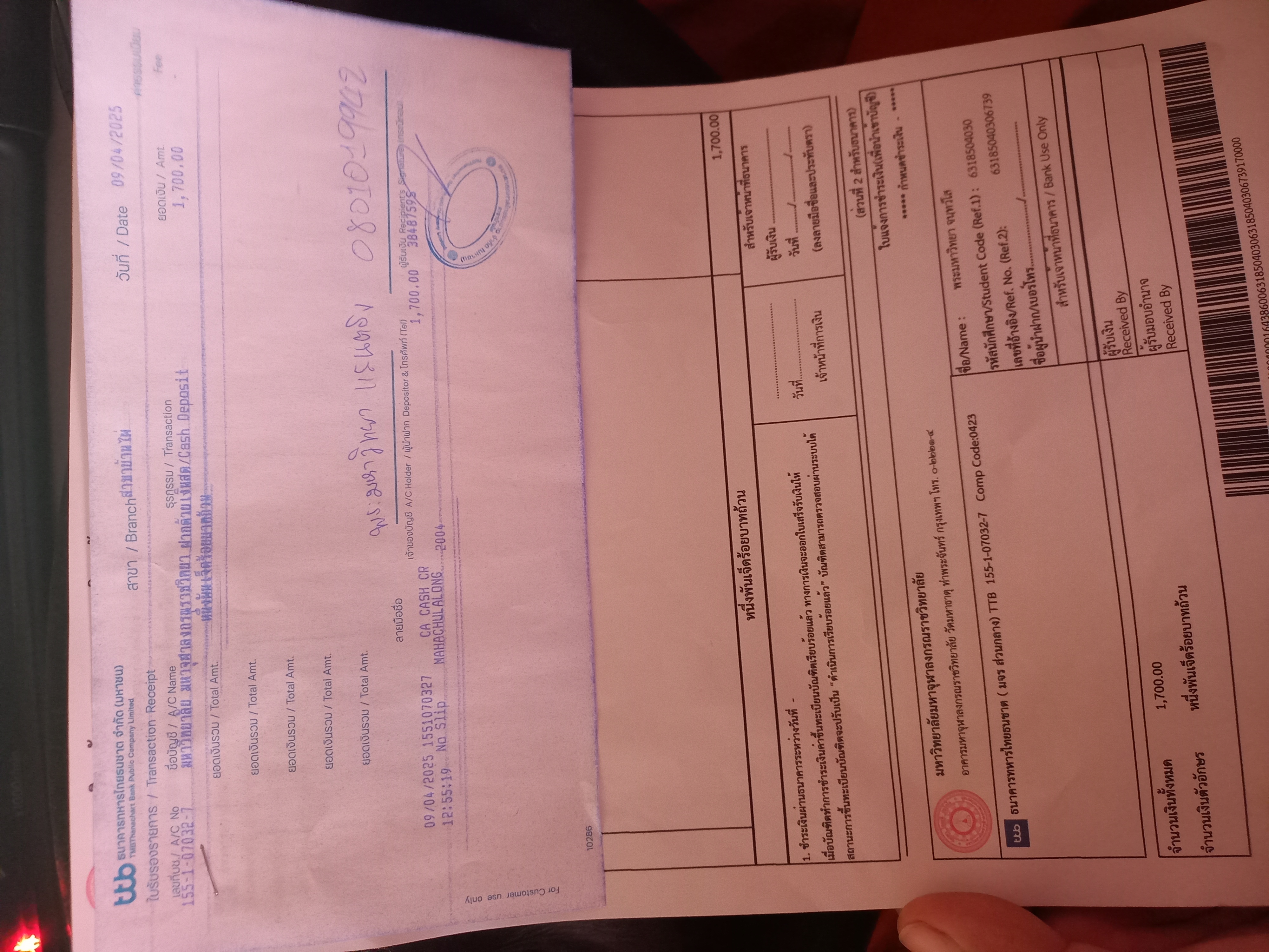 ใบเสร็จรับเงิน/เอกสารยืนยันการชำระเงิน(แนบเอกสาร)