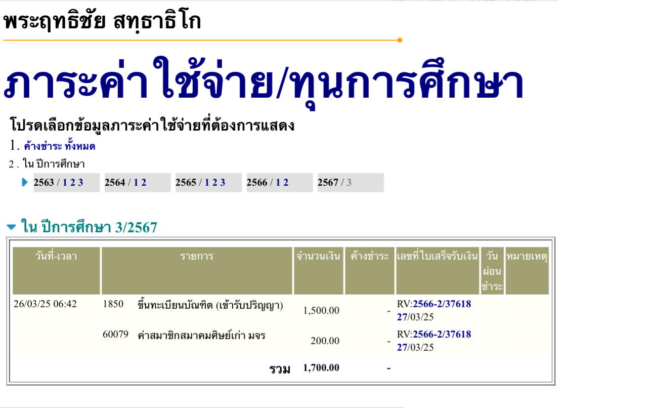 | สถานะเข้าพิธีประสาทปริญญา : บรรพชิต | ระดับ : ปริญญาตรี | สังกัดคณะ: คณะสังคมศาสตร์ | สาขาวิชา: รัฐศาสตรบัณฑิต |