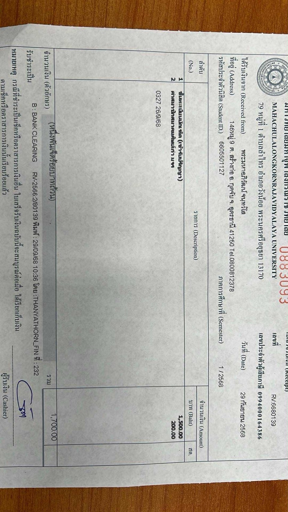 | รหัสนิสิต : 6605501127 | ชื่อ : พระมหาอภิวัฒน์ | ฉายา: จนฺทวํโส | นามสกุล: พิลาพรม |