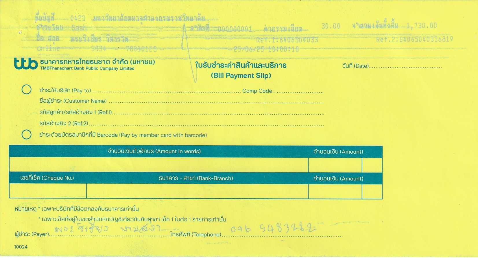 ใบเสร็จรับเงิน/เอกสารยืนยันการชำระเงิน(แนบเอกสาร)