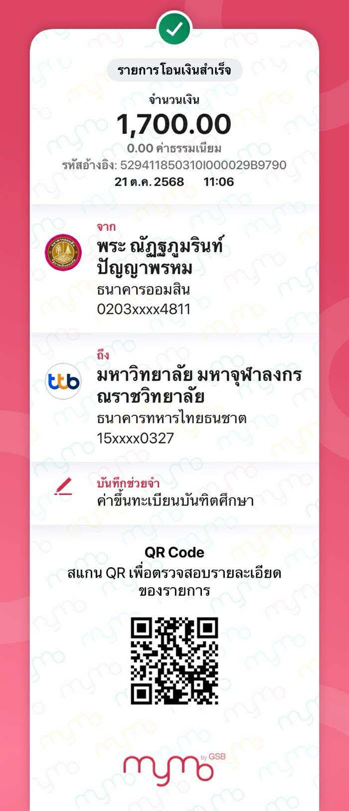 QR Code สำหรับสแกนเข้าร่วมพิธี * เข้าพิธีประสาทปริญญาวันที่ 6 ธันวาคม 2568 |