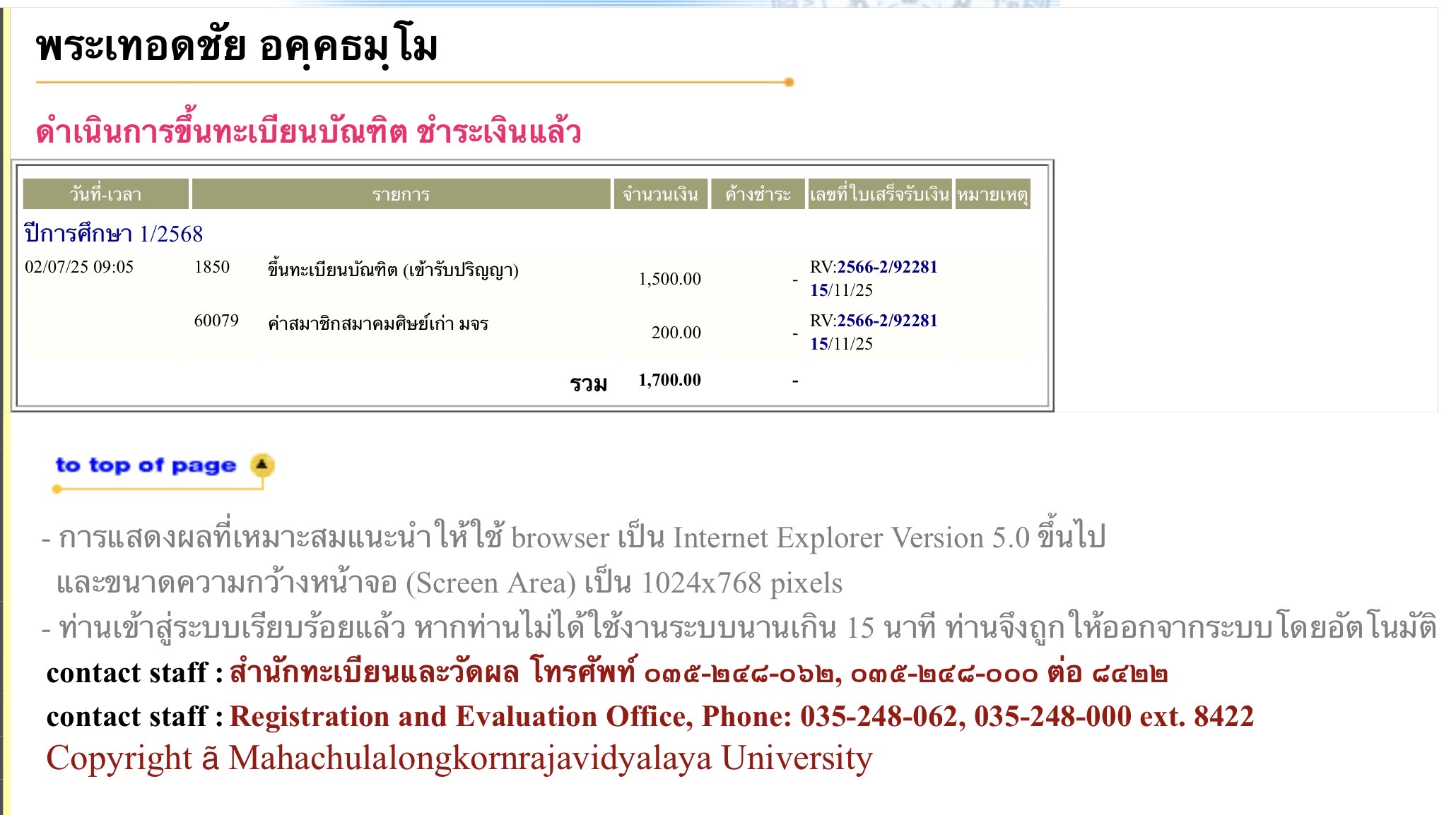 | สถานะเข้าพิธีประสาทปริญญา : บรรพชิต | ระดับ : ปริญญาตรี | สังกัดคณะ: คณะสังคมศาสตร์ | สาขาวิชา: รัฐศาสตรบัณฑิต |